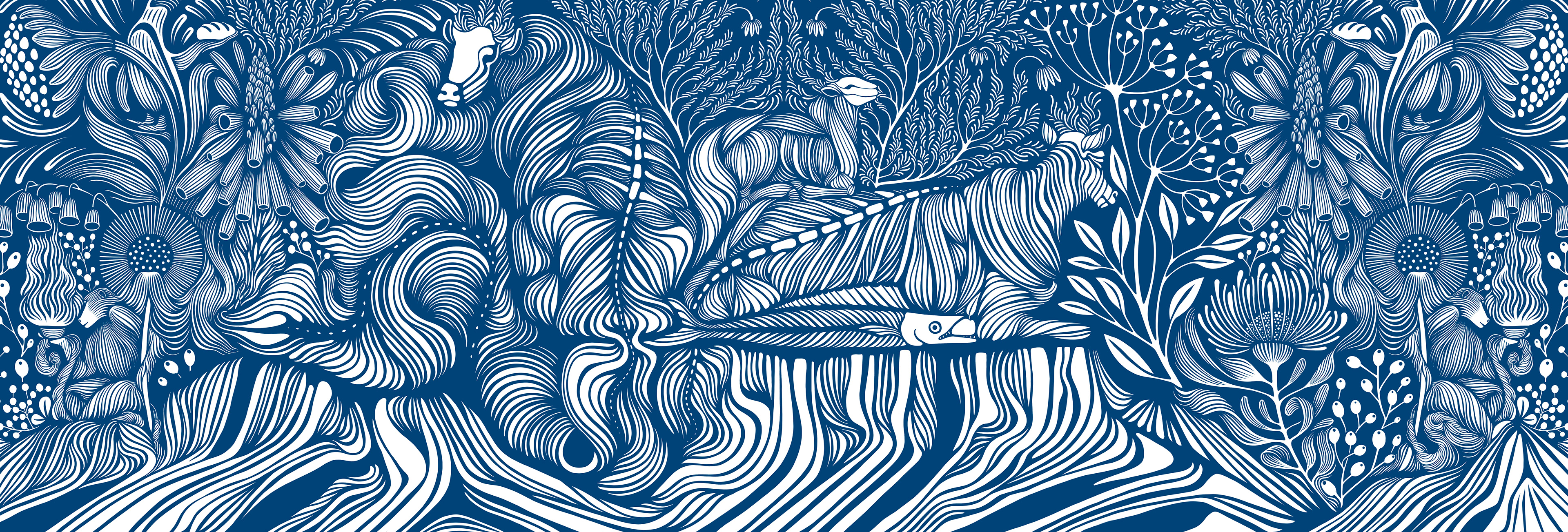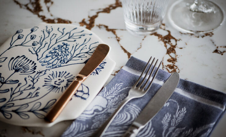 Marble Group's custom line-work interpreted as a table setting on Table Mountain.