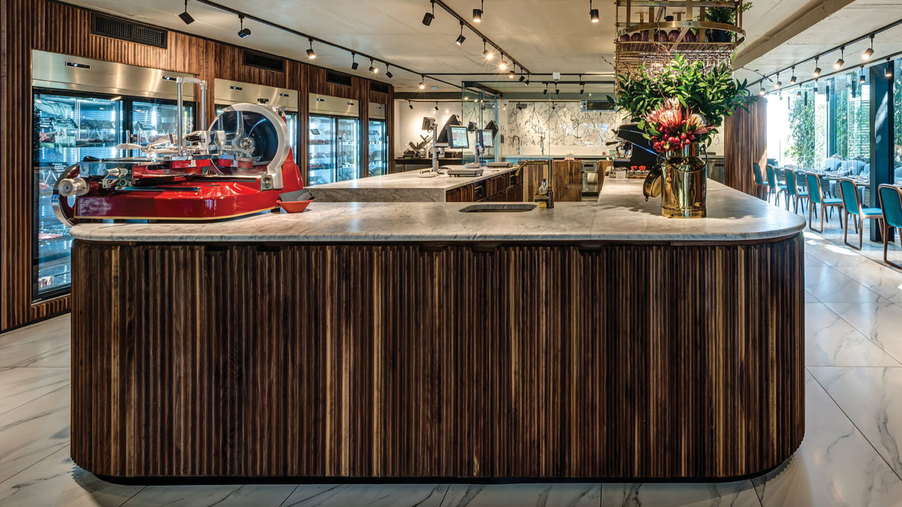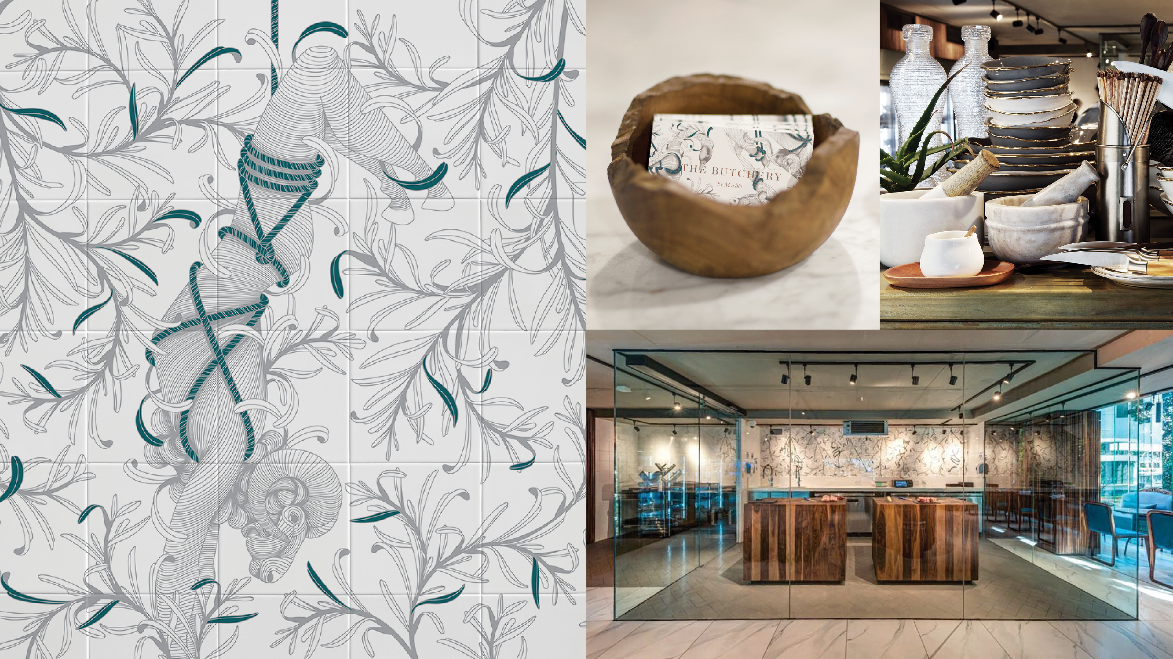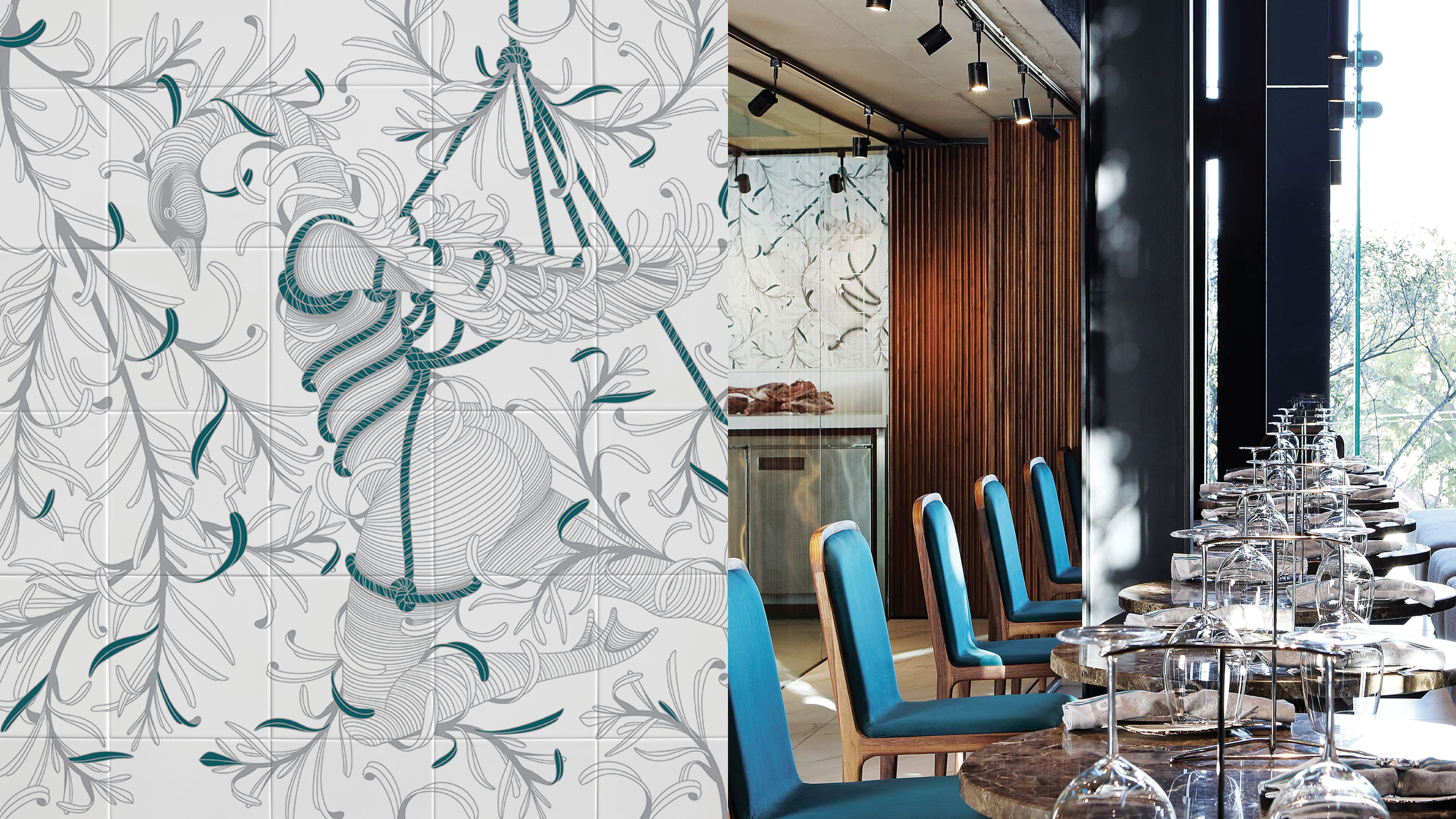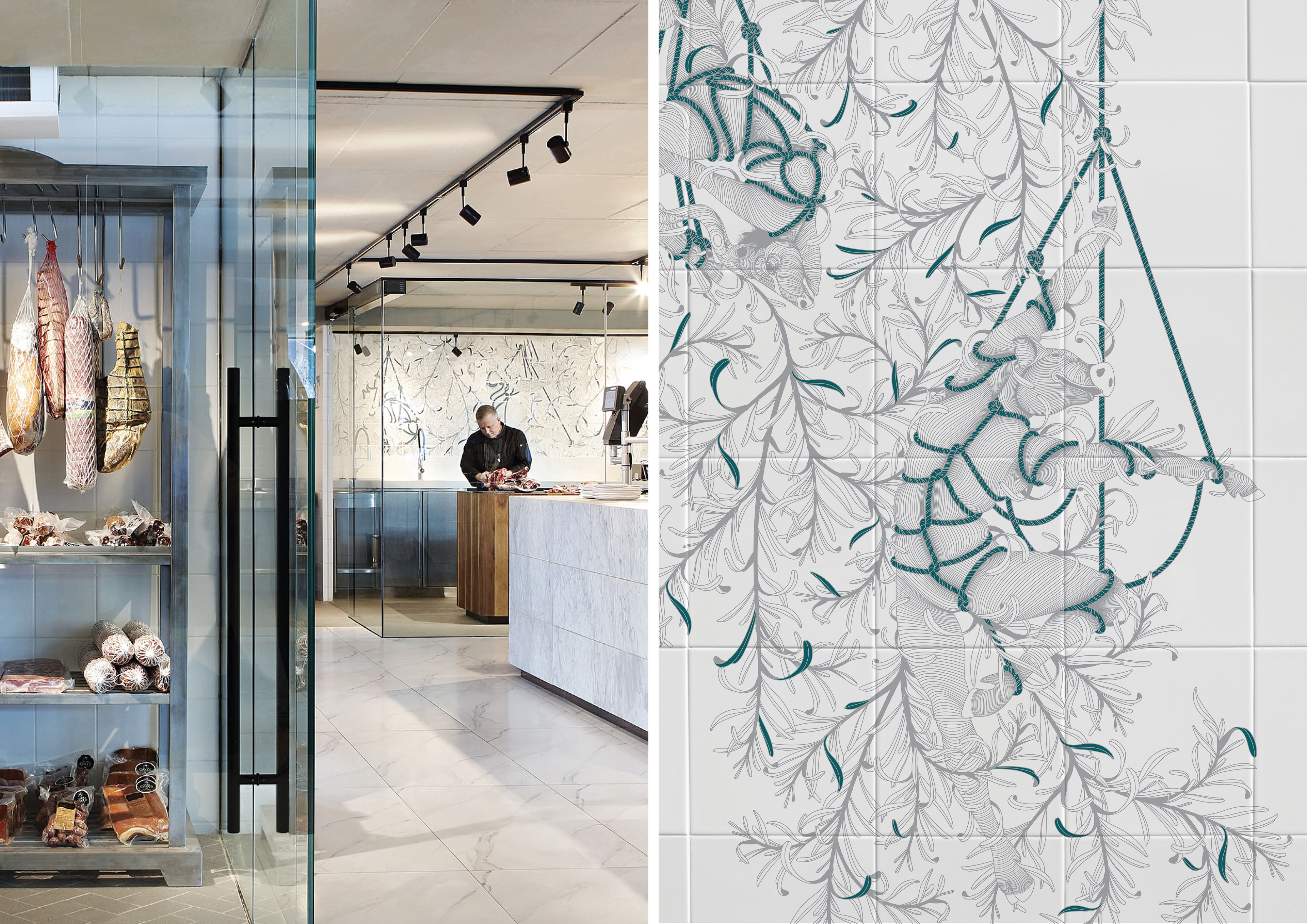 These ceramic tiles for The Butchery by Marble were inspired by the natural overlap of Japanese Shibari style rope binding to evoke the feeling of meat as art.